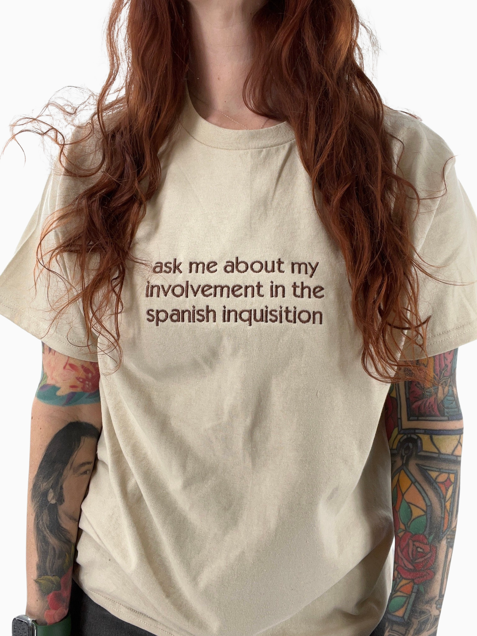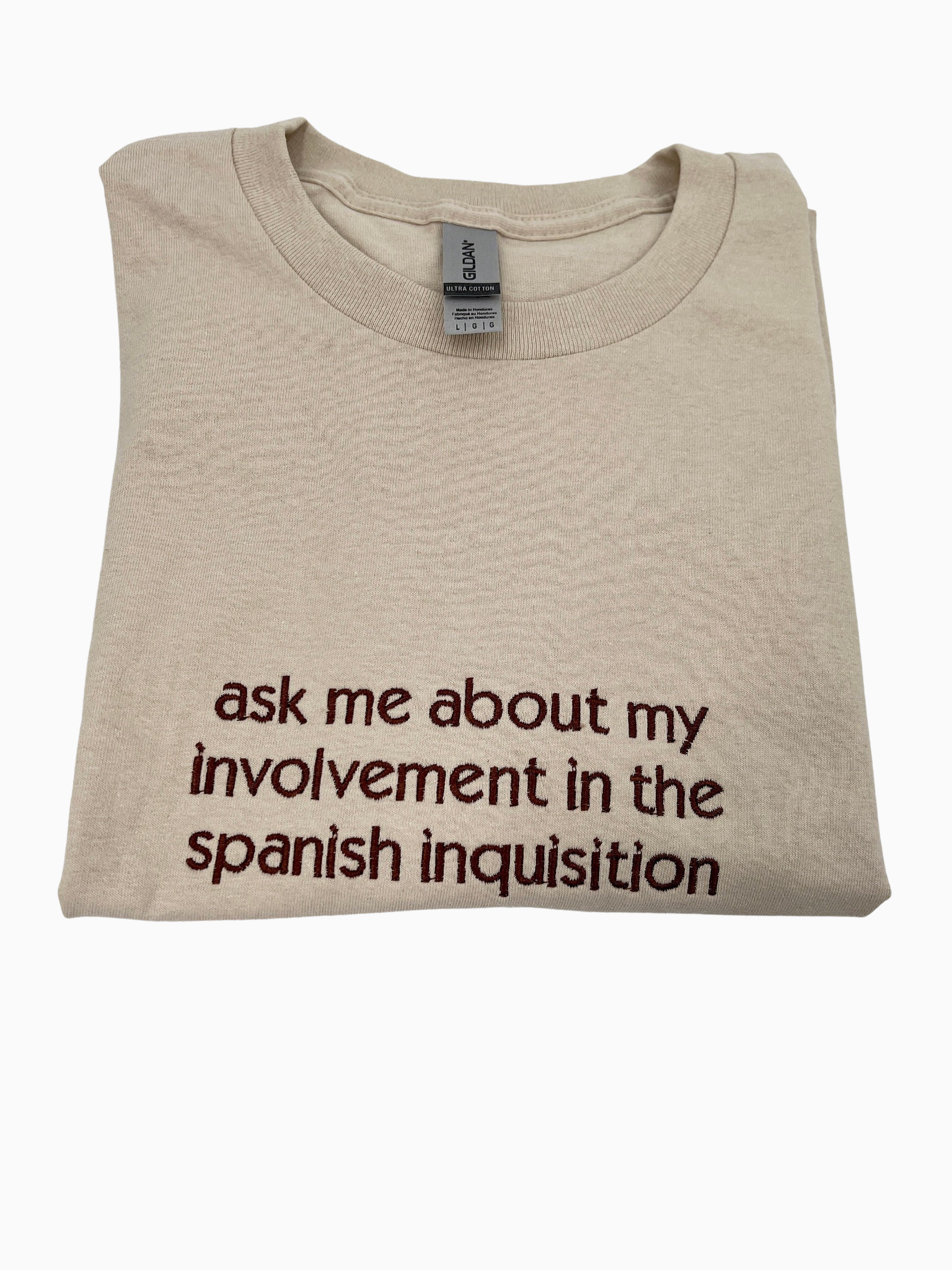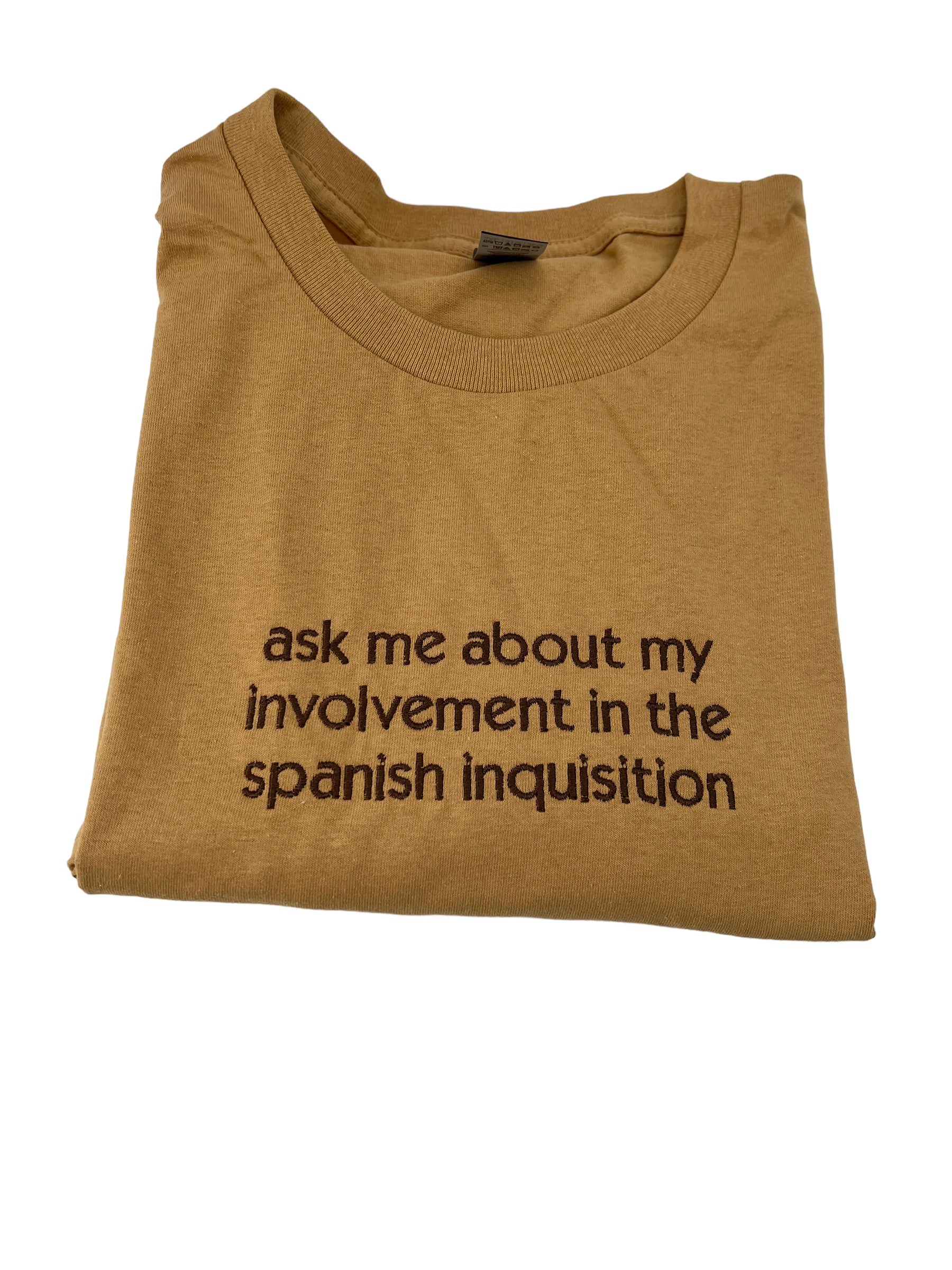 Ask Me About My Involvement In The Spanish Inquisiton Embroidered Shirt