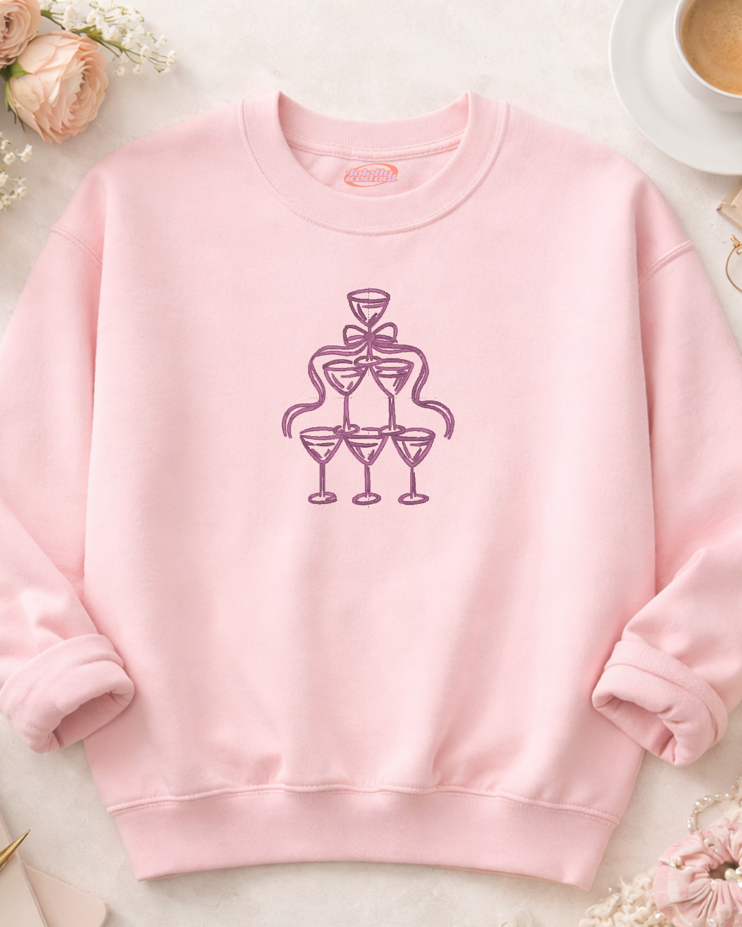 • High-quality embroidered champagne tower design
