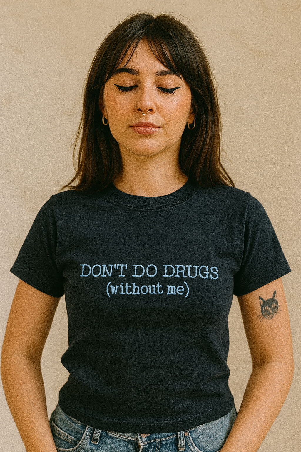 Remember not to do drugs. But if you're going to do them, don't do them without me. "Don't DO Drugs...