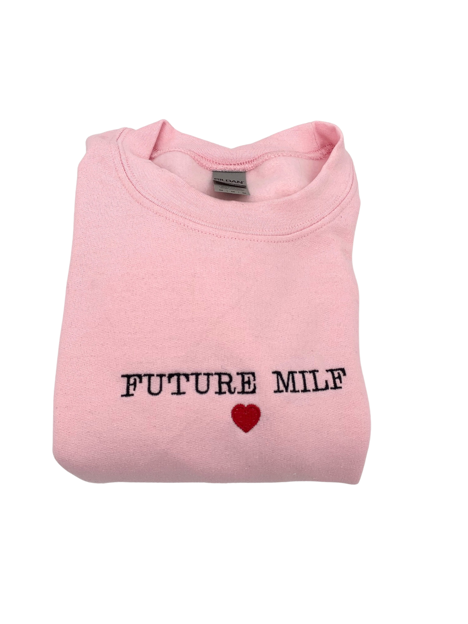 Looking for a comfy and stylish sweatshirt that celebrates your journey to one day make it into the MILF hall of fame? Look no further than this "Future Milf" sweatshirt! Made from high-quality cotton and polyester, this sweatshirt is soft, cozy, and perfect for wearing on chilly days. The design features bold, eye-catching letters that proudly proclaim your status as a milf-to-be, making it a fun and playful addition to any casual outfit. Whether you're running errands, working from home, or just relaxing with a good book, this sweatshirt is sure to keep you feeling comfortable and confident as you look forward to the exciting adventure ahead. So why wait? Get your "Future Milf" sweatshirt today and show the world that you're ready to embrace Milfhood with open arms!