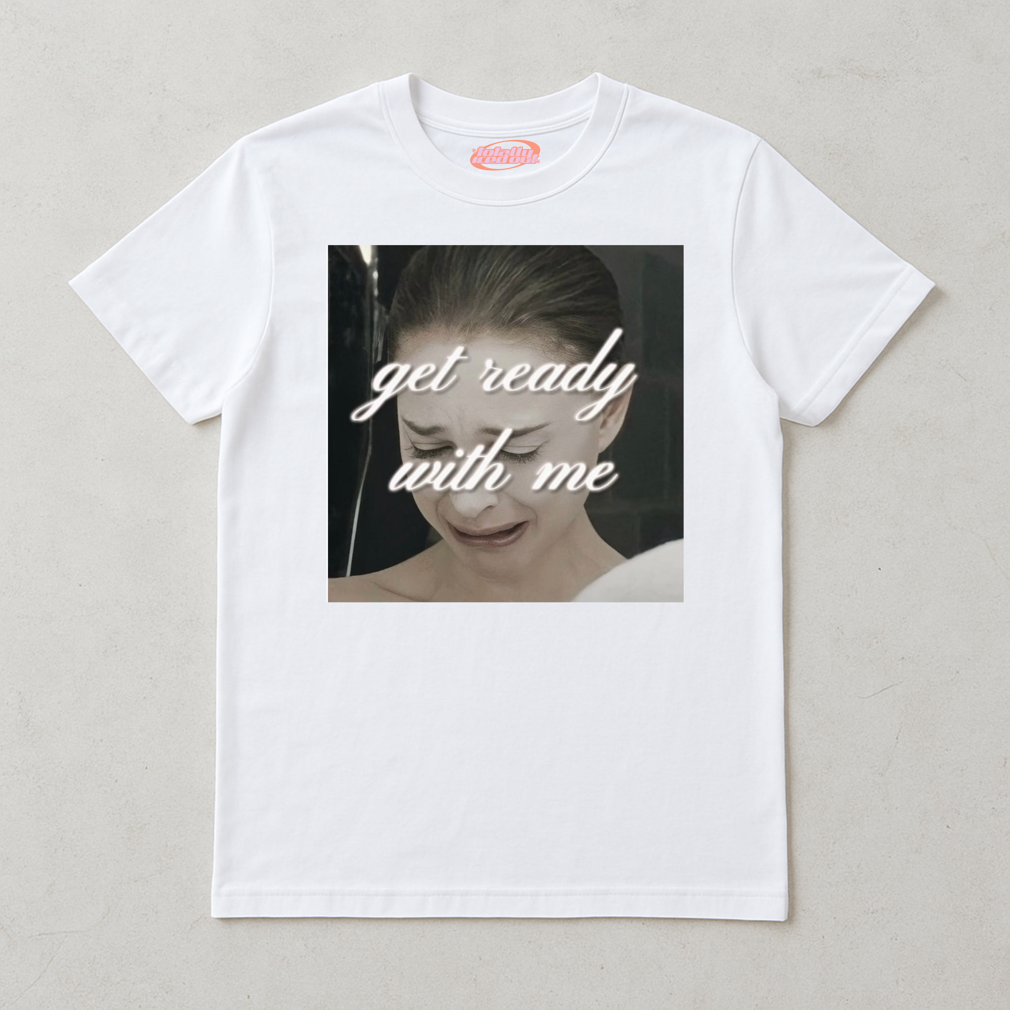 Make a statement with our “Get Ready With Me” crying girl shirt – the perfect mix of unhinged humor, ironic aesthetic, and meme-core vibes. This graphic printed tee or sweatshirt is designed for anyone who loves Y2K fashion, alternative style, weirdcore, and statement tops that get people talking.