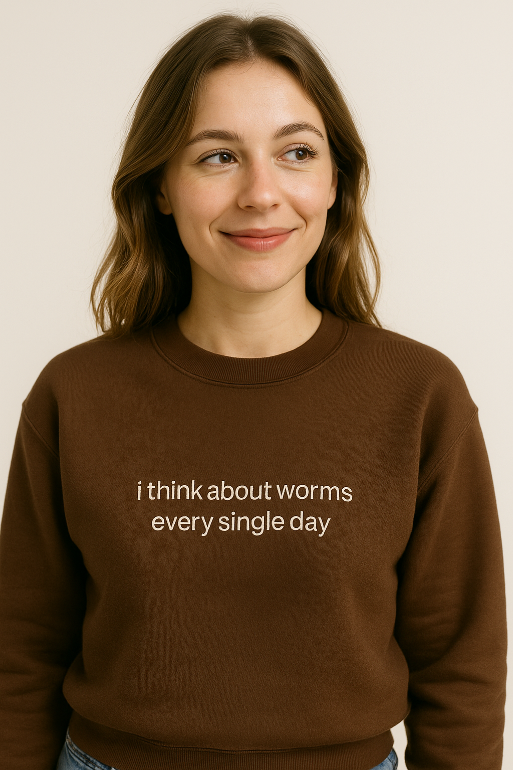 I Think About Worms Every Single Day Unisex Embroidered T-Shirt or Crewneck Sweatshirt