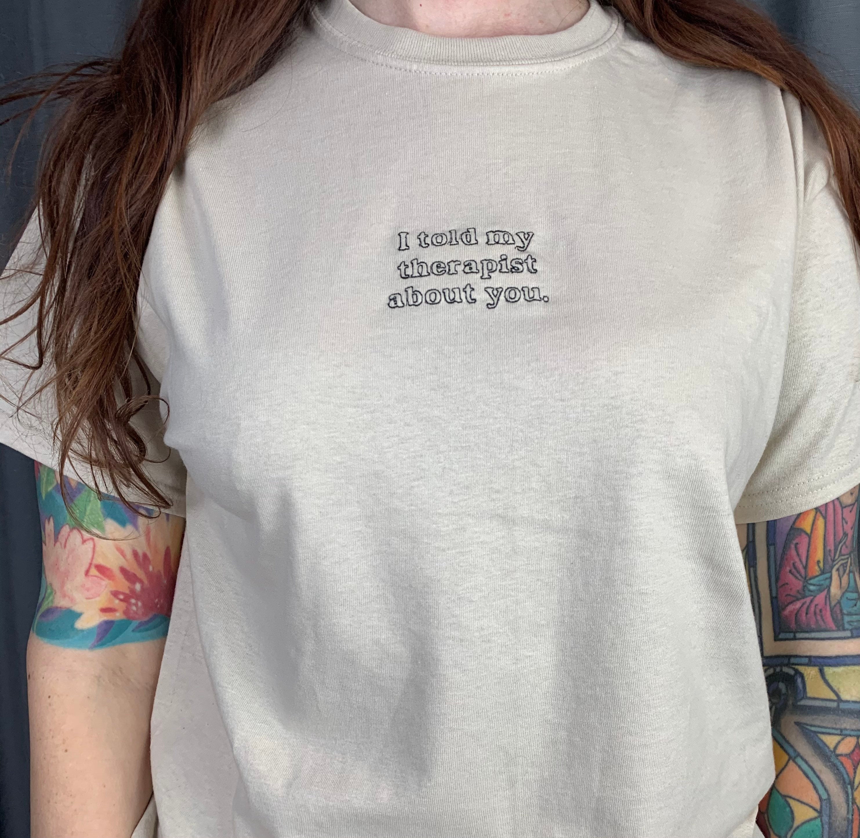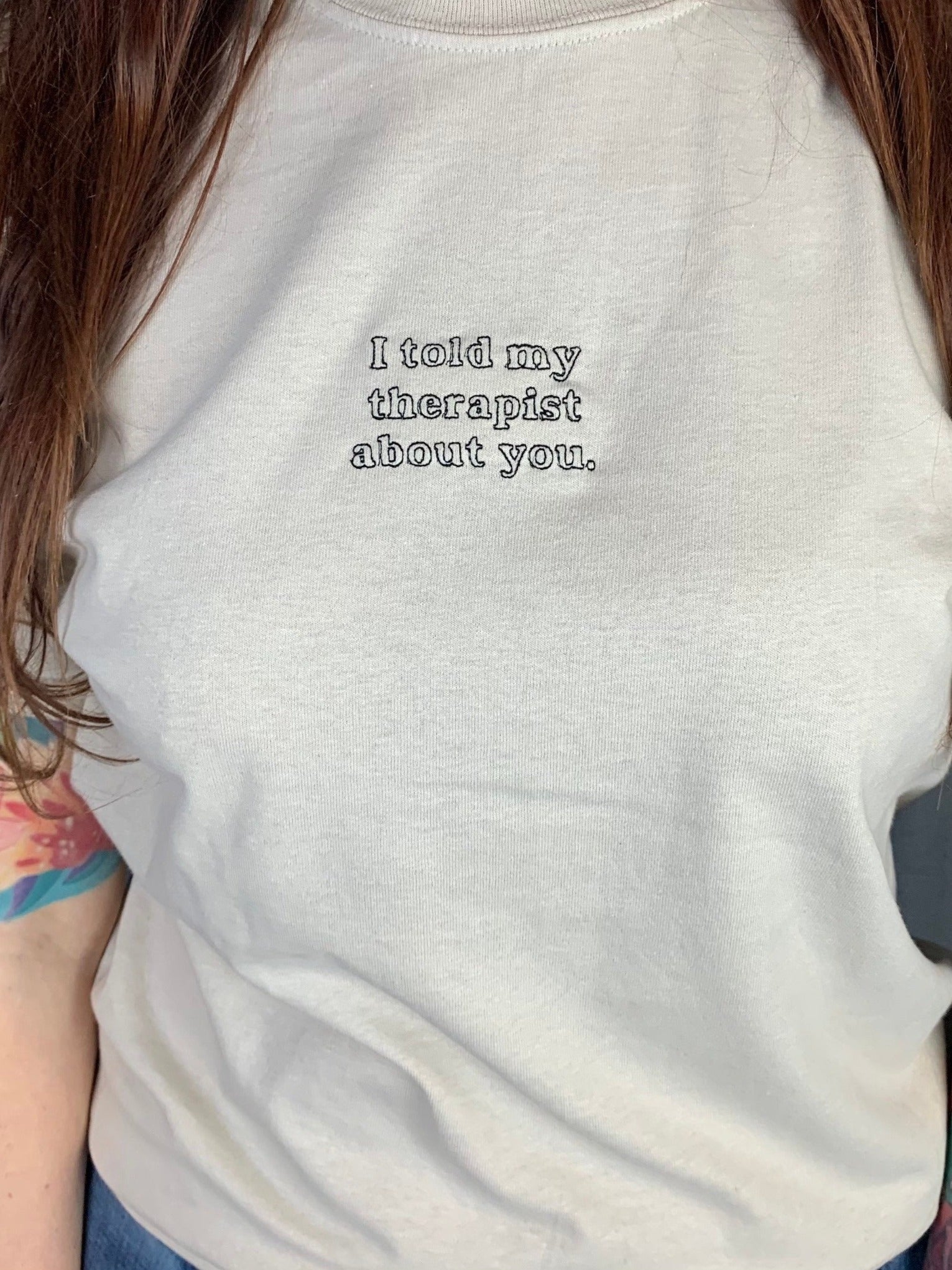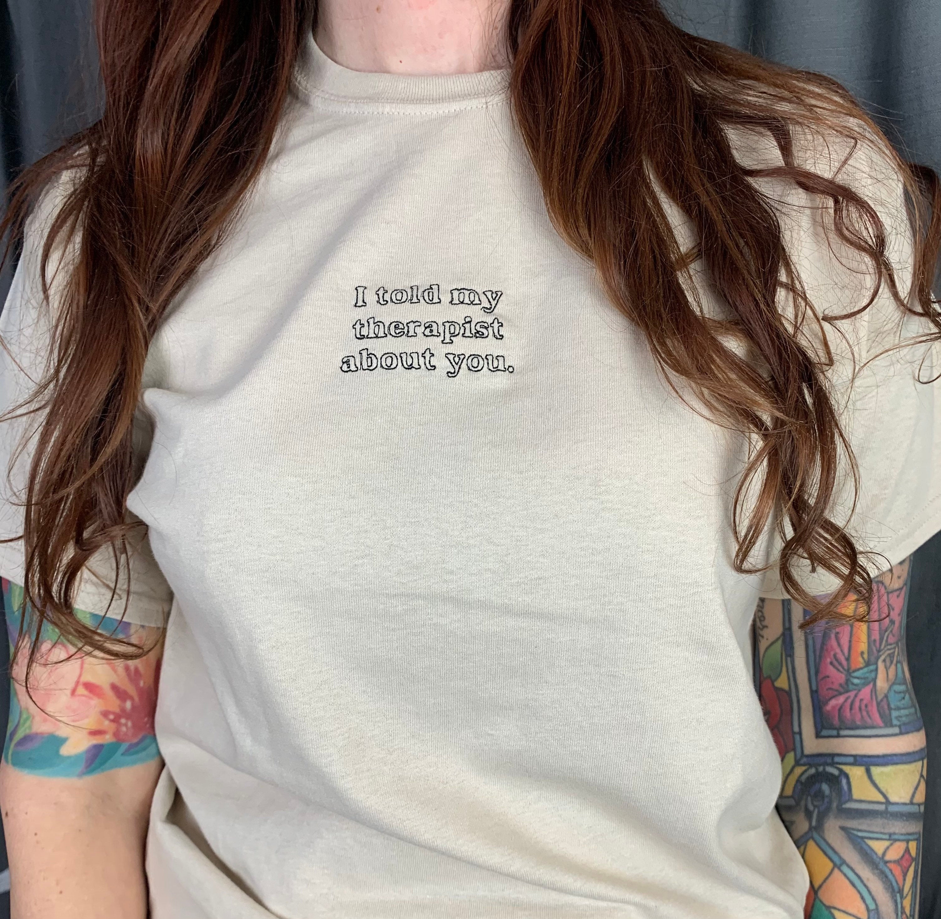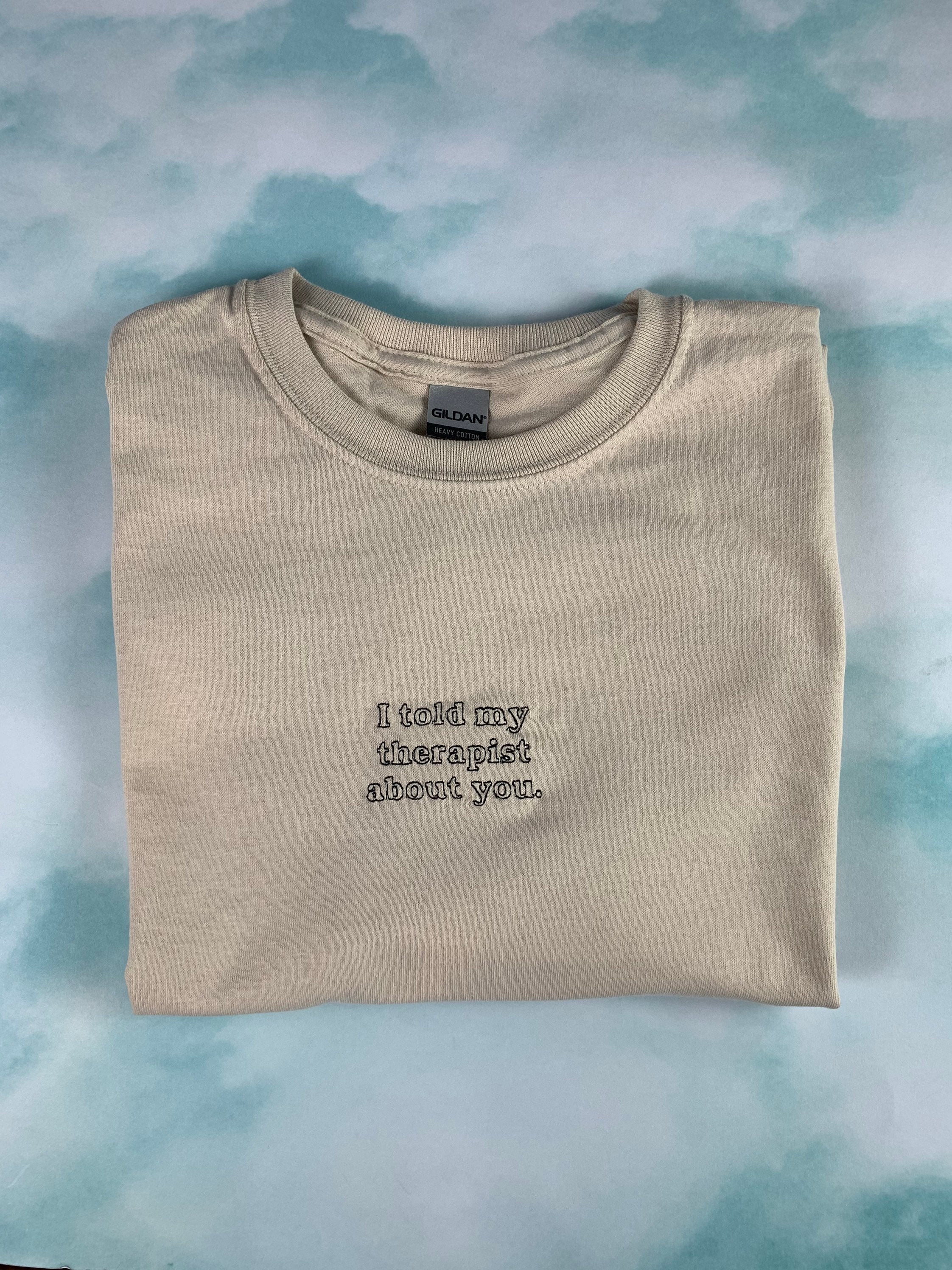 I Told My Therapist About You tee made on a Gildan Heavy 100% Cotton Tee