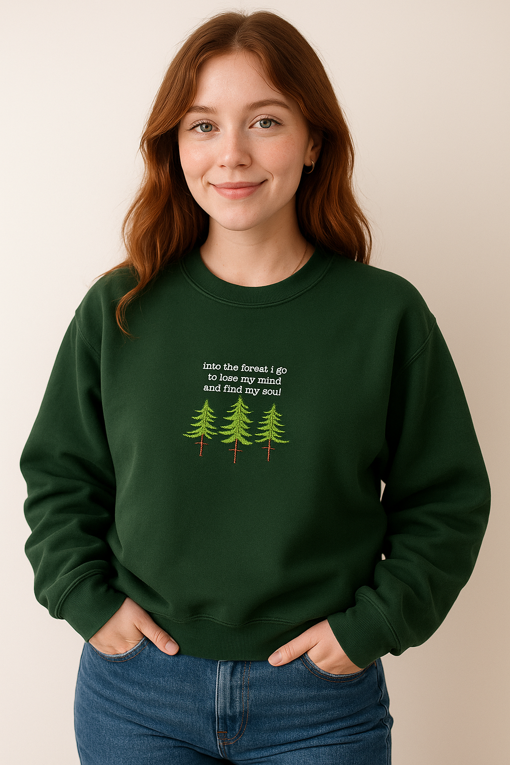 Into the woods I go to lose my mind and find my soul , John Muir quote embroidered on a...