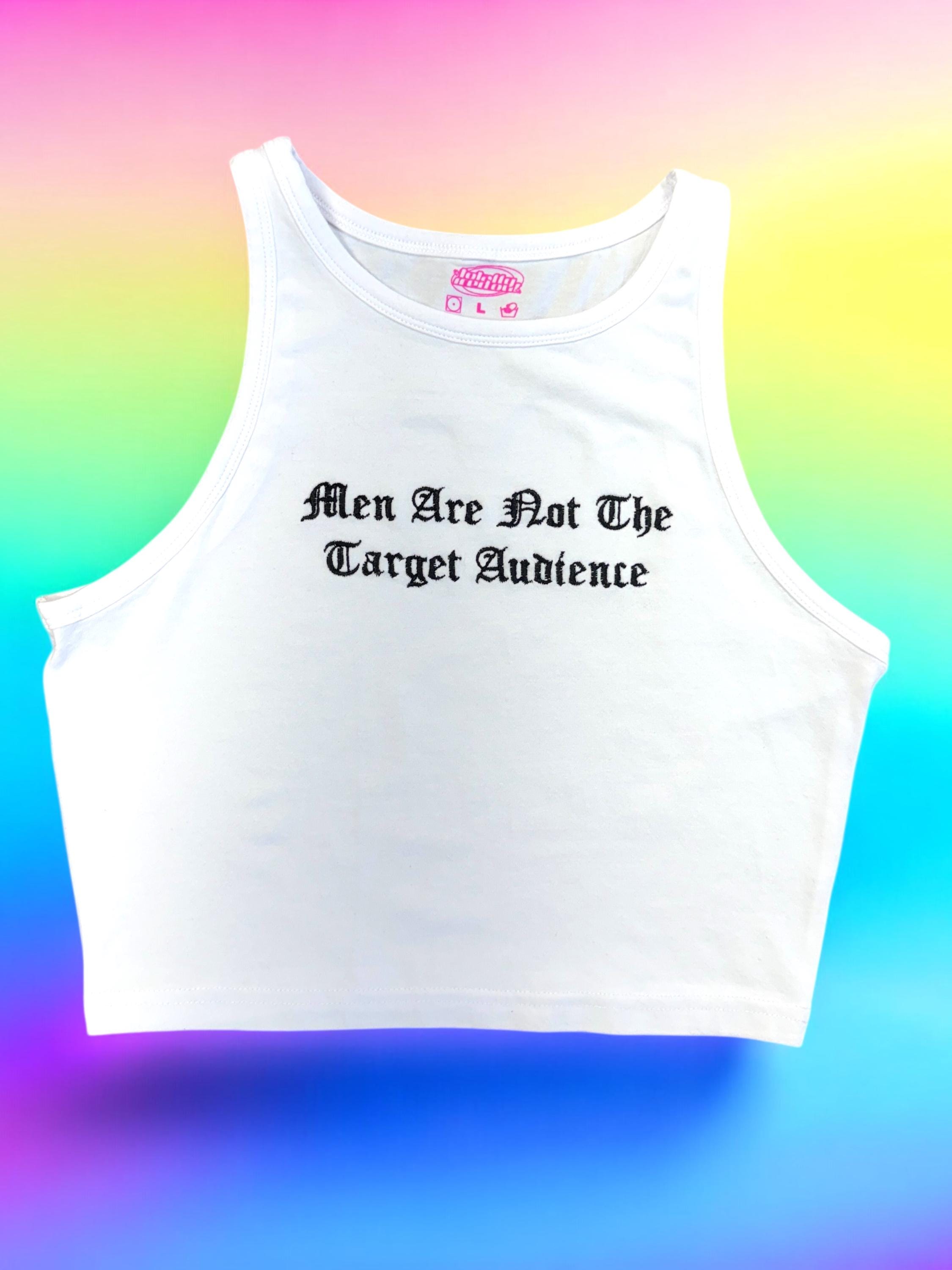 Let the world know who your target audience is in our adorable embroidered Men Are Not The Target Audience Tank...