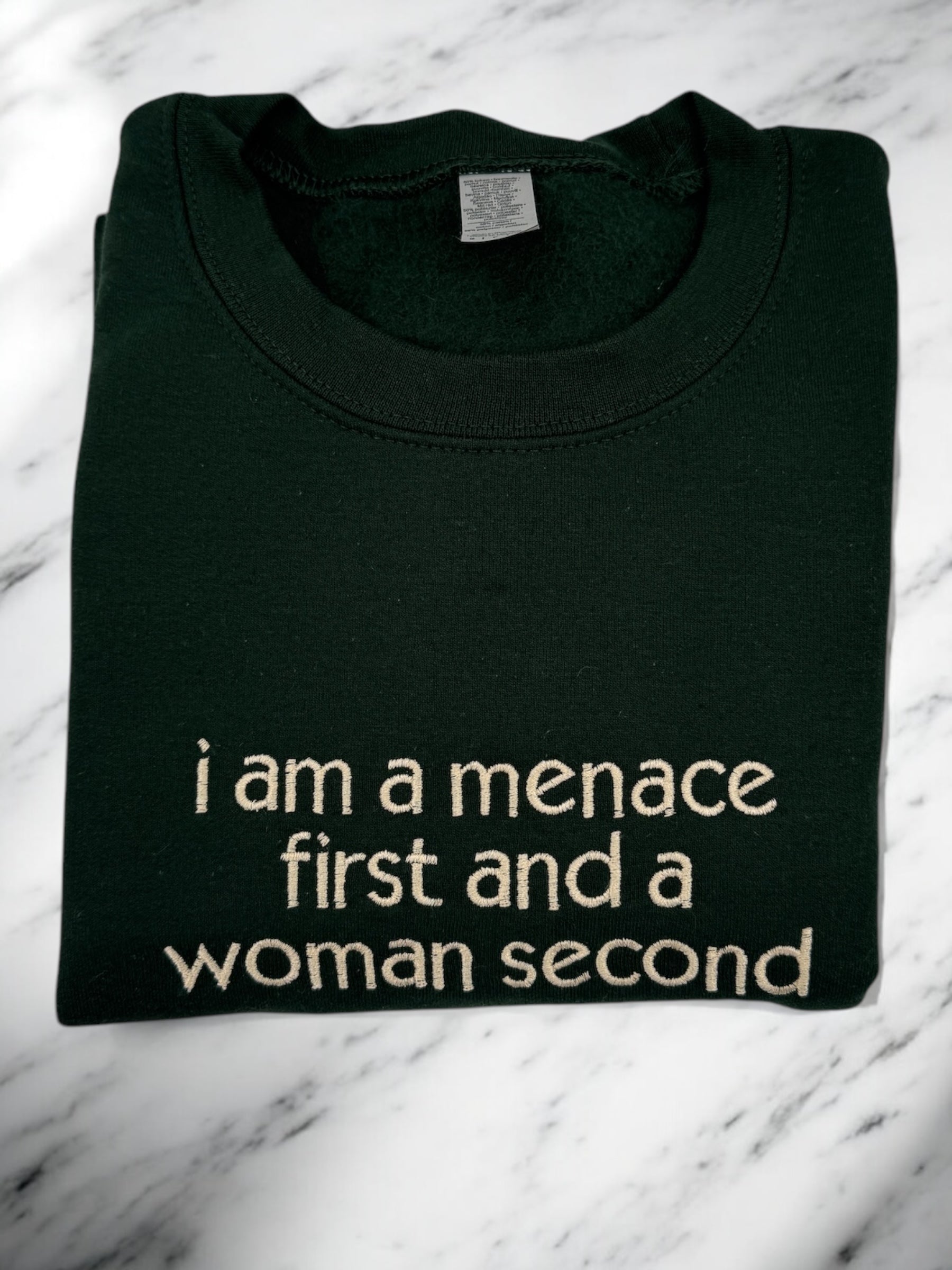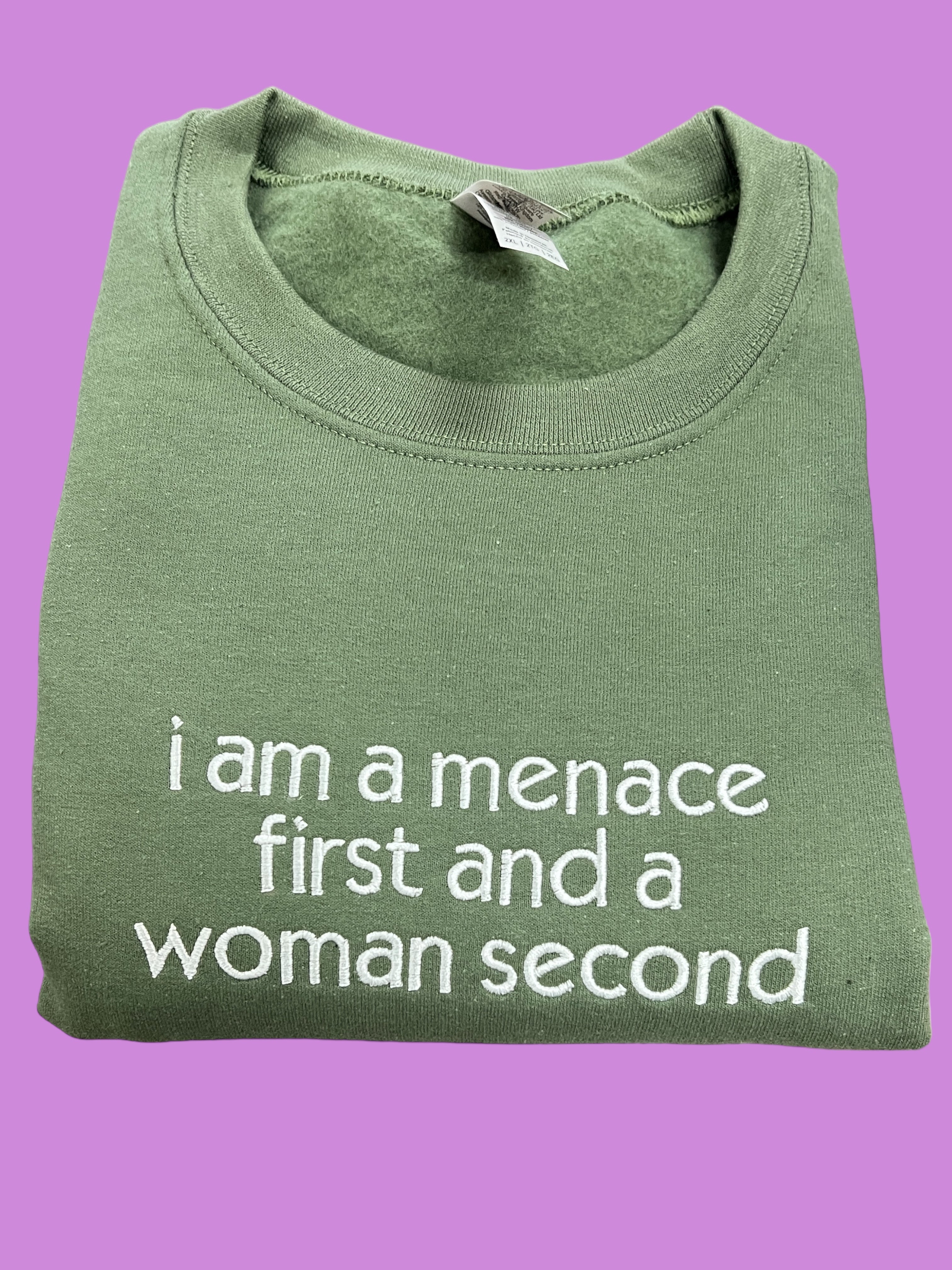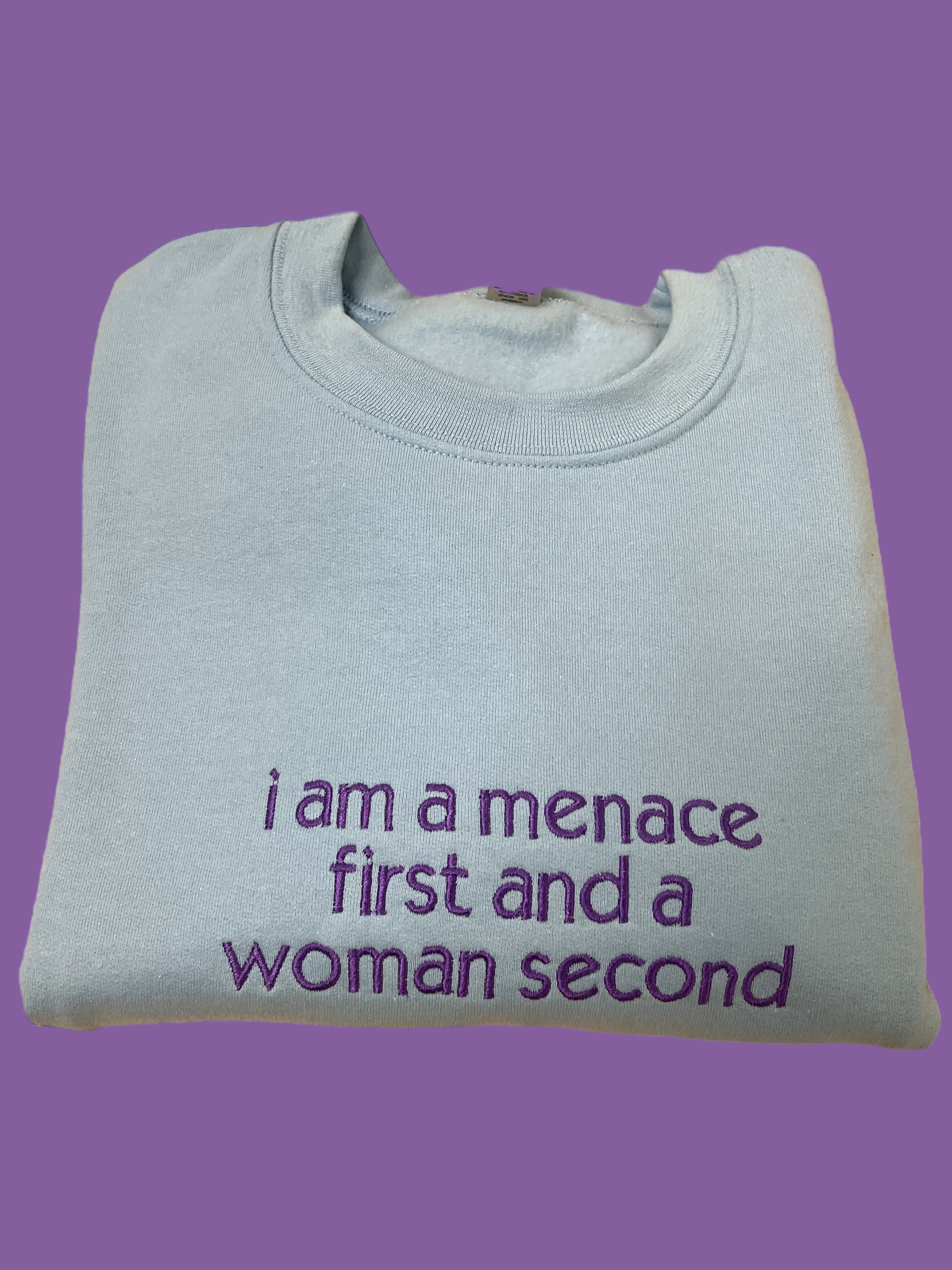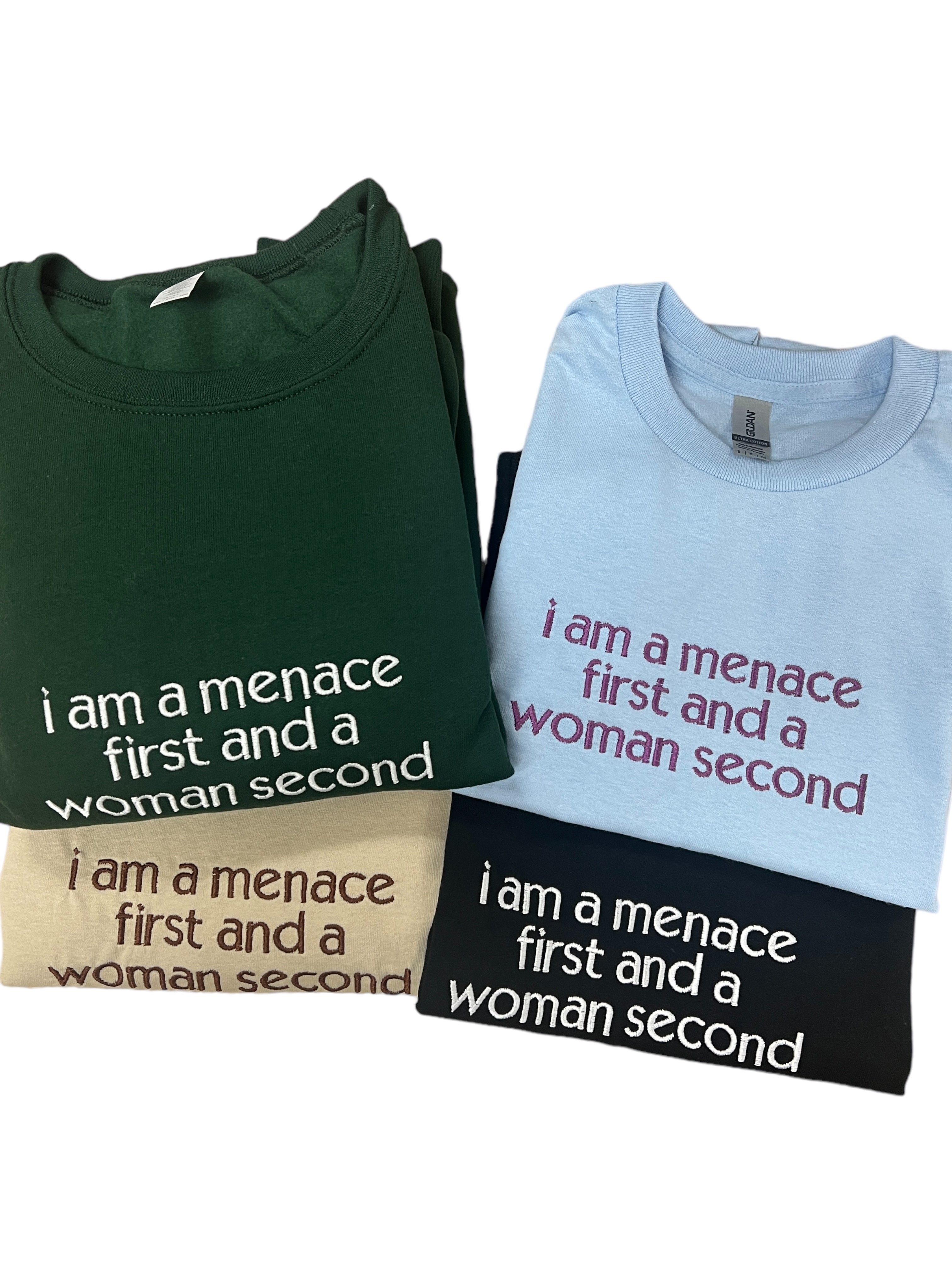 Menace First Woman Second Embroidered Unisex T-Shirt or Sweatshirt
