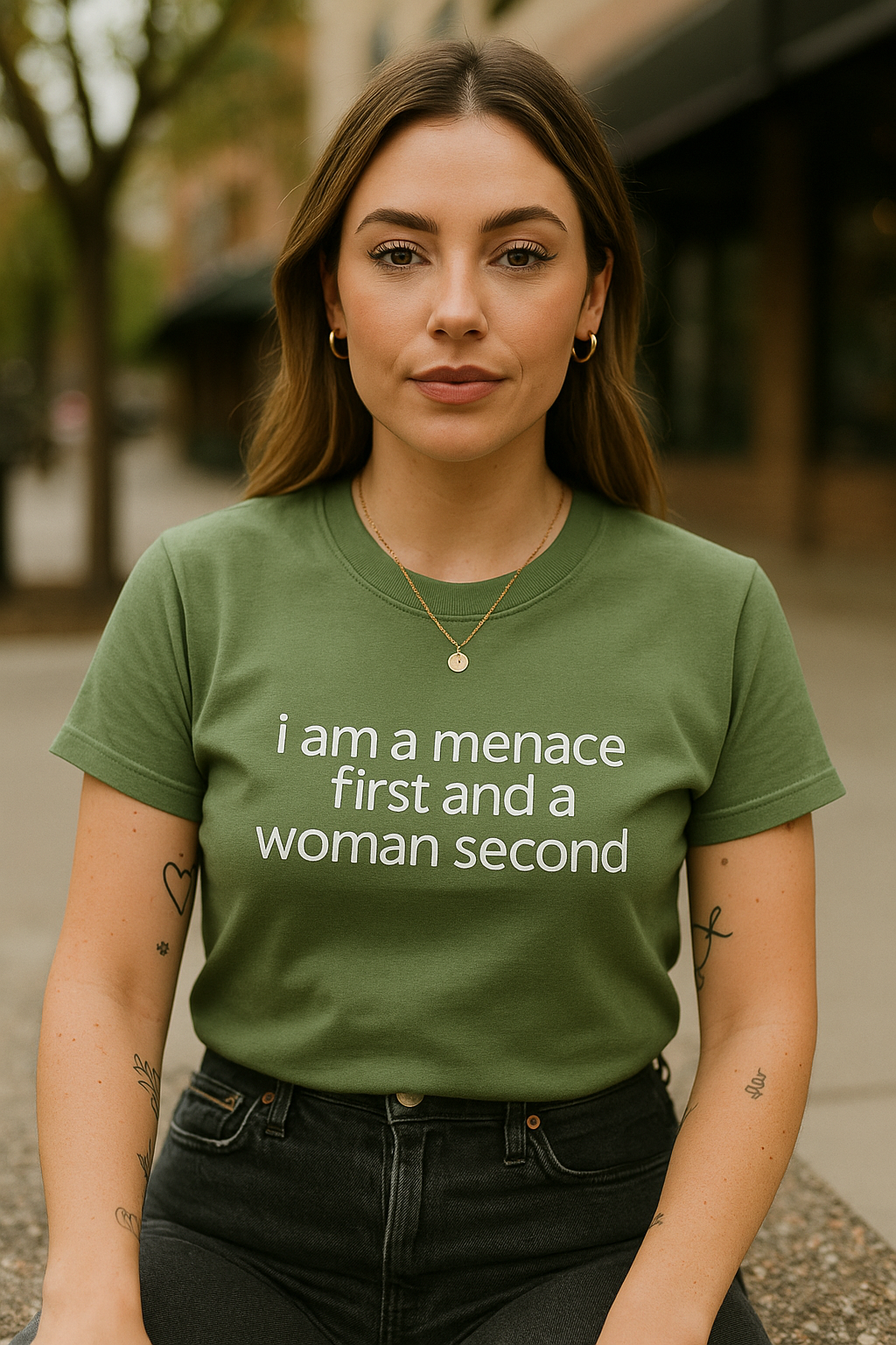 I am a menace first and a woman second. This lovely embroidered shirt is perfect for the lovely in your...