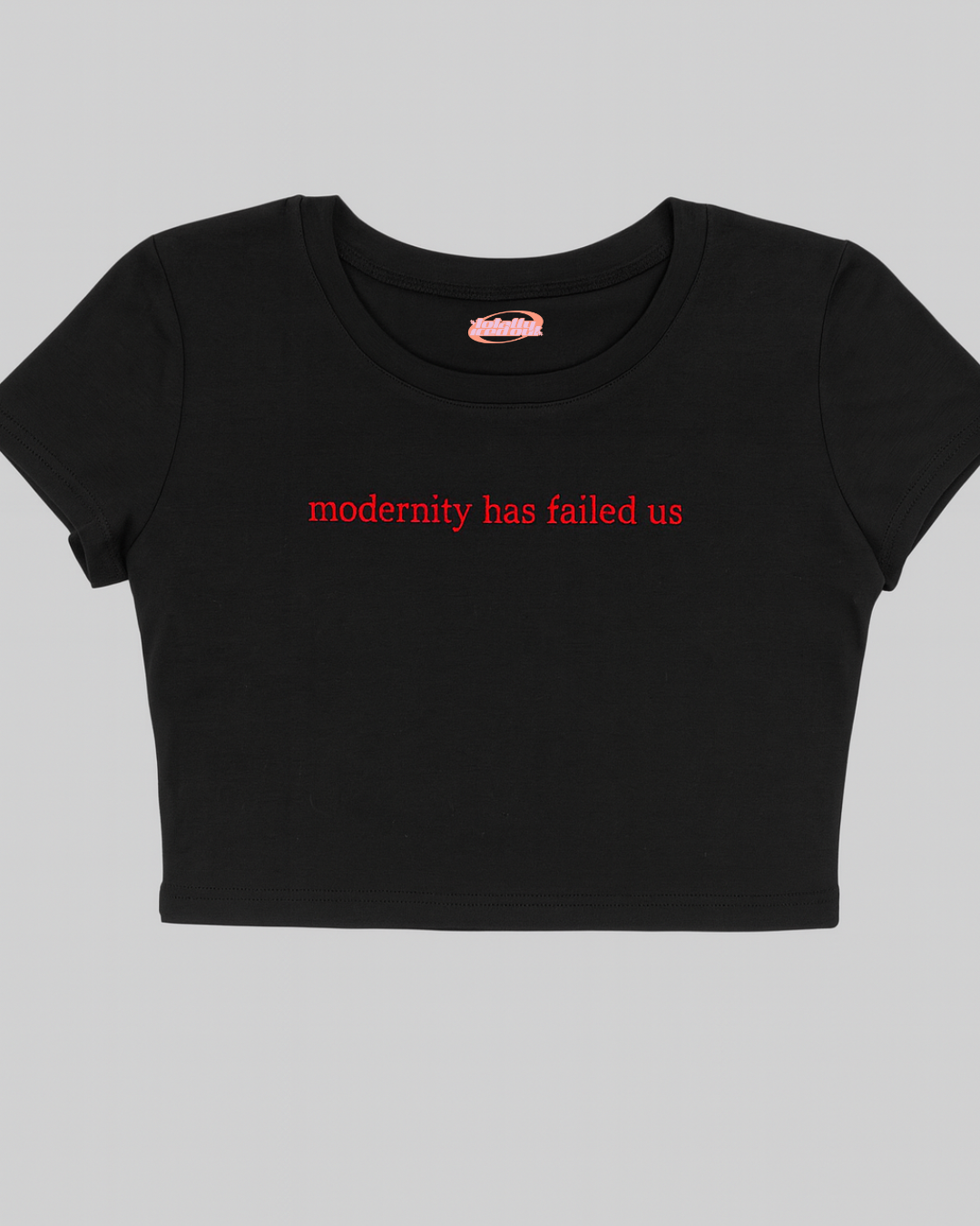 “Modernity Has Failed Us” Shirt – Gothic Baby Tee, Ironic Meme Top, Alternative Graphic Tee