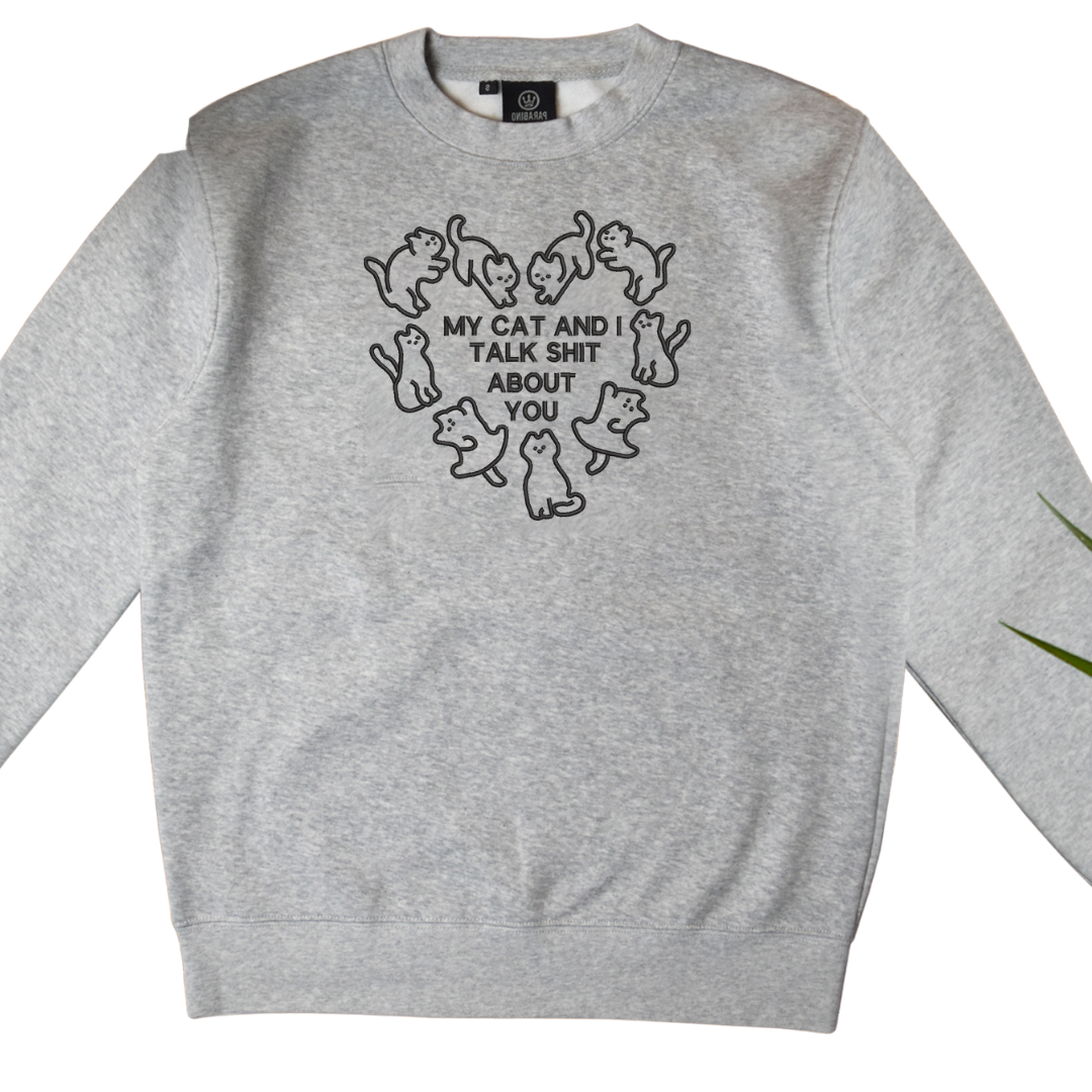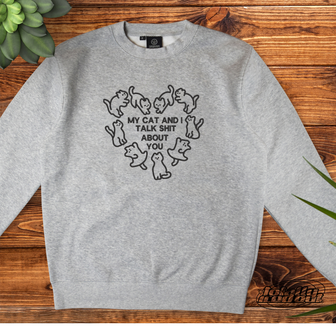 My Cat And I Talk Shit About You Embroidered Unisex Tee or Crewneck Sweatshirt