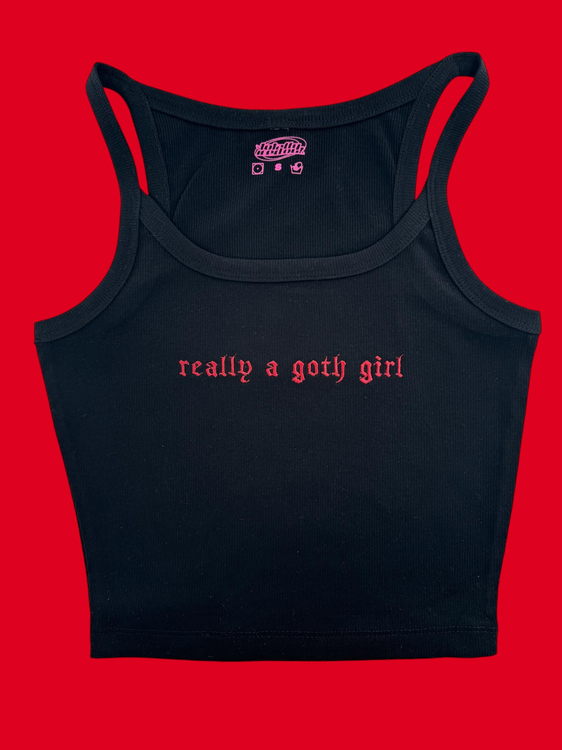 Really a Goth Girl Embroidered Baby Rib Spaghetti Strap Tank Top or Baby Tee