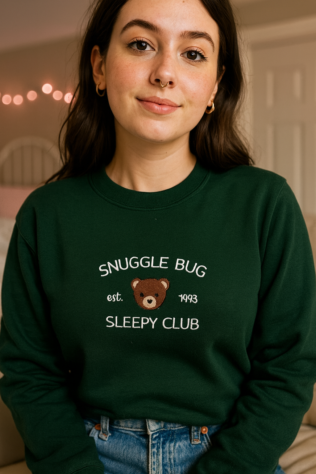Snuggle Bug Sleepy Club Cute Unisex Embroidered T-Shirt or Crewneck Sweatshirt